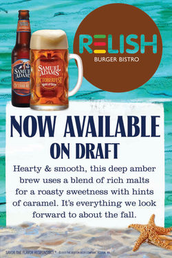 There is the menu card in which the restaurant wanted a beach theme for Octoberfest, a Rebel Grapefruit window vinyl, a Curious Traveler Beer Co. tap magnet, promotional poster for new Samuel Adams products, a large scale Sam Seasonal banner, and in-house thank you cards for the Pennsylvania Brewery office.